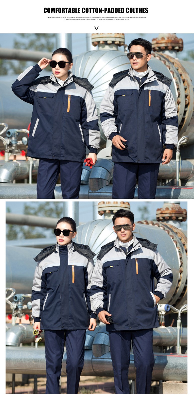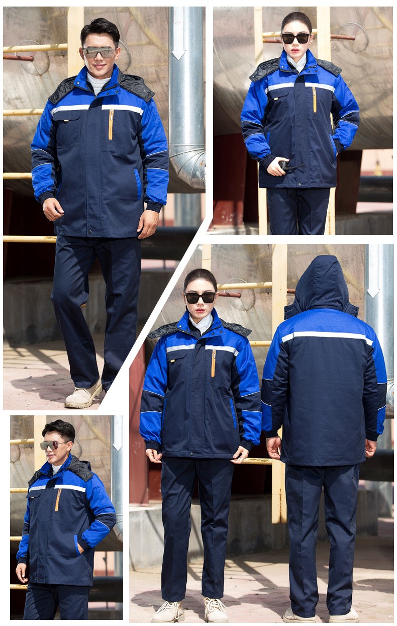• 商品名称:君御JY-M1009冬季全工艺涤棉加厚工作服糖果五代棉服上艳兰下藏蓝