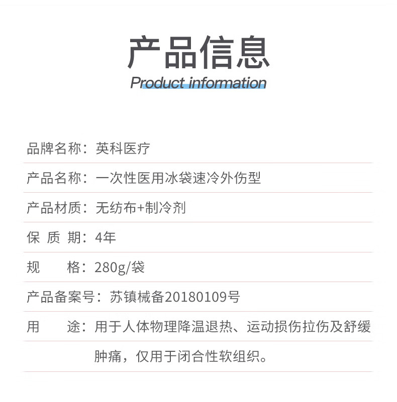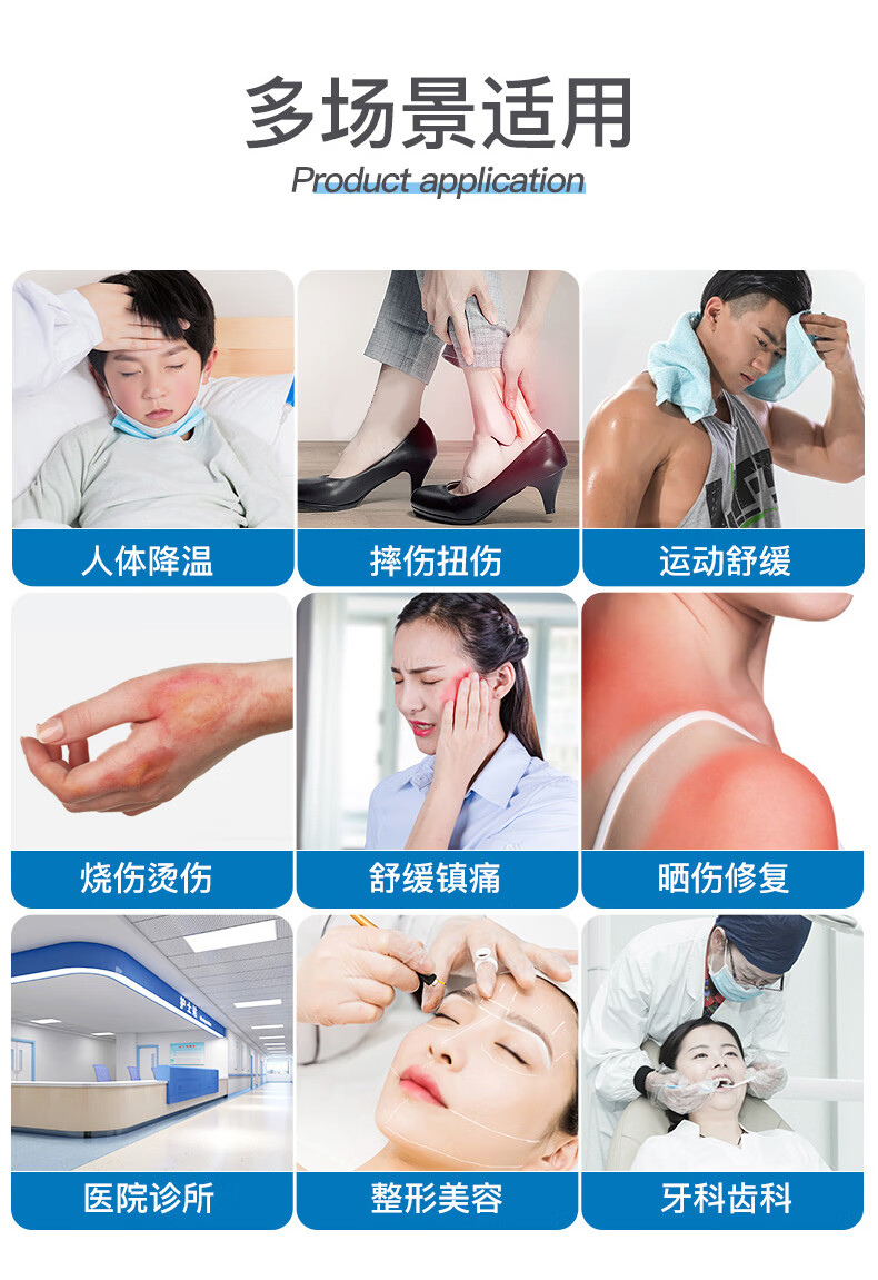 一次性使用,避免交叉感染,使用方便无需放入冰箱,冷敷降温,可缓解疼痛。针对发烧、头痛、术后的冷敷止痛等。