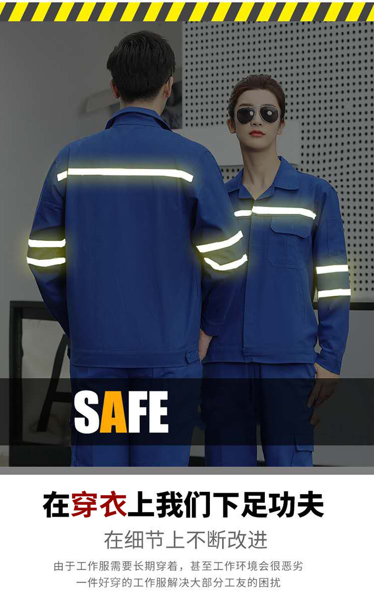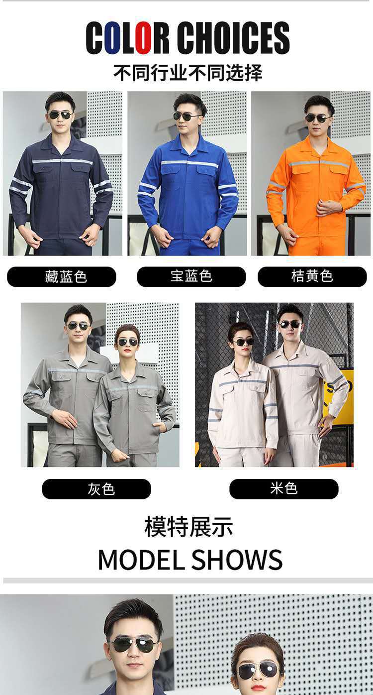• 商品名称:君御JY-纯棉W3602春秋全工艺全棉加厚工作服套装多反光条橘红色