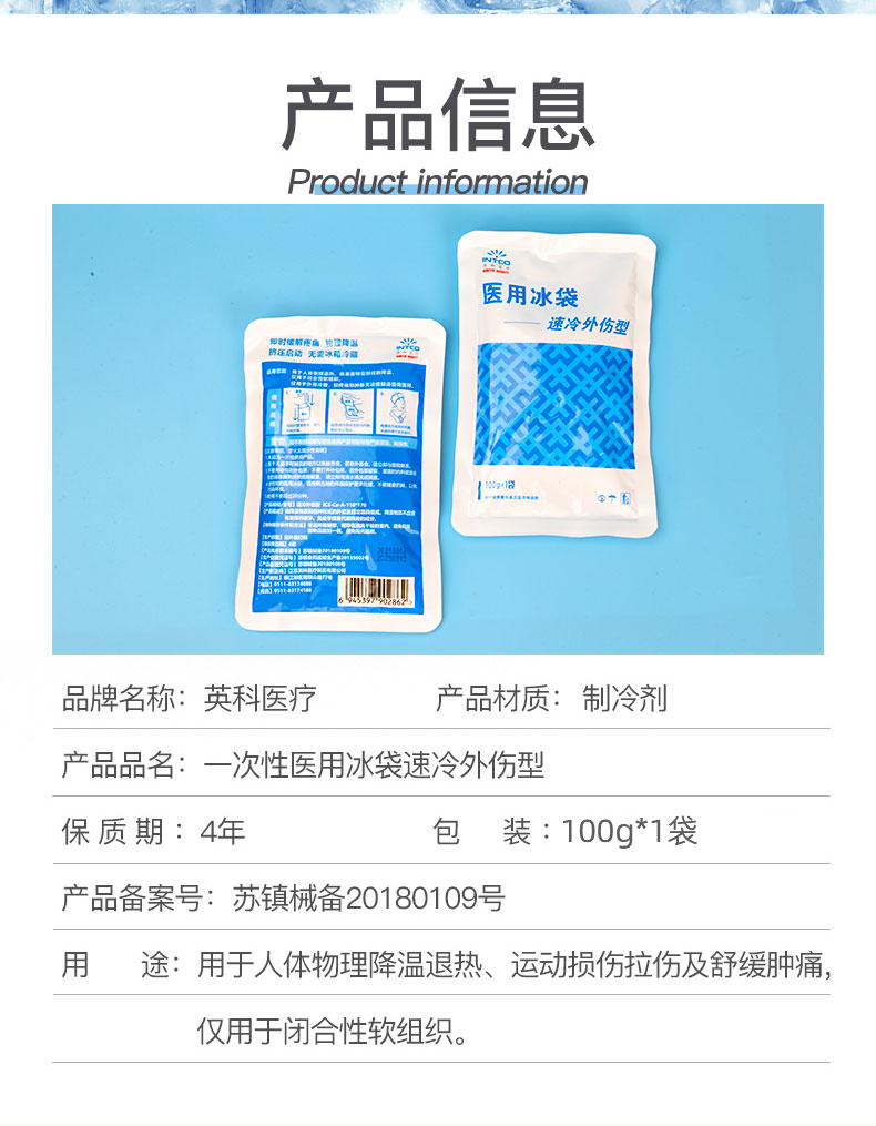 一次性使用,避免交叉感染,使用方便无需放入冰箱,冷敷降温,可缓解疼痛。针对发烧、头痛、术后的冷敷止痛等。