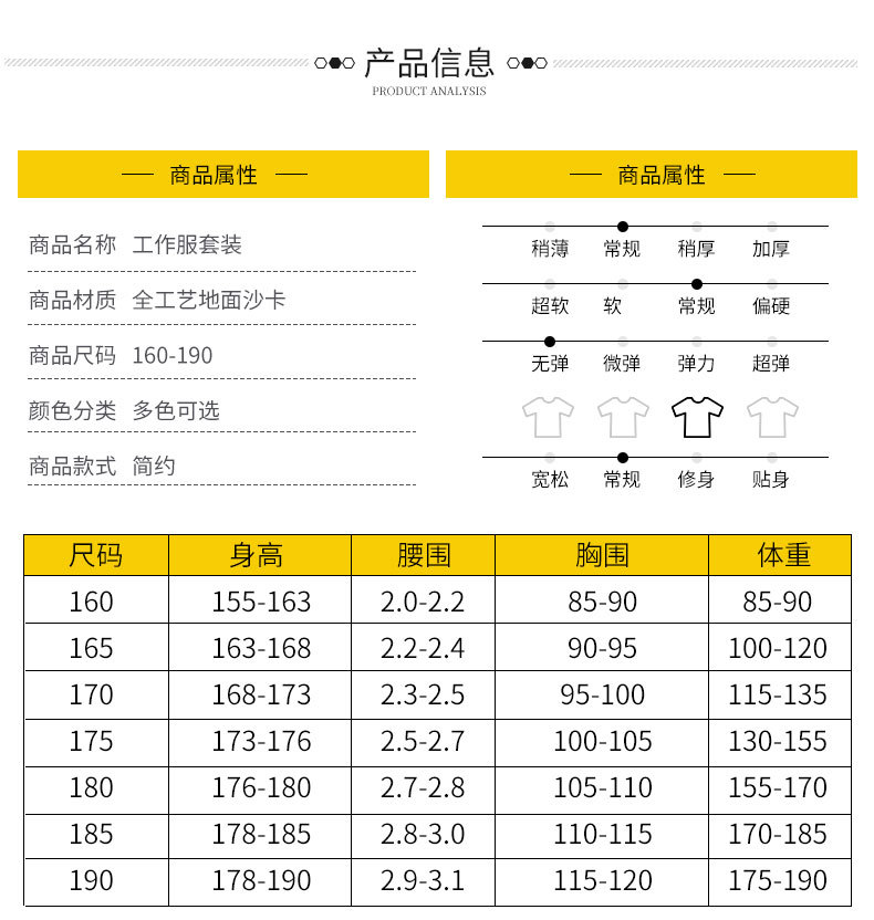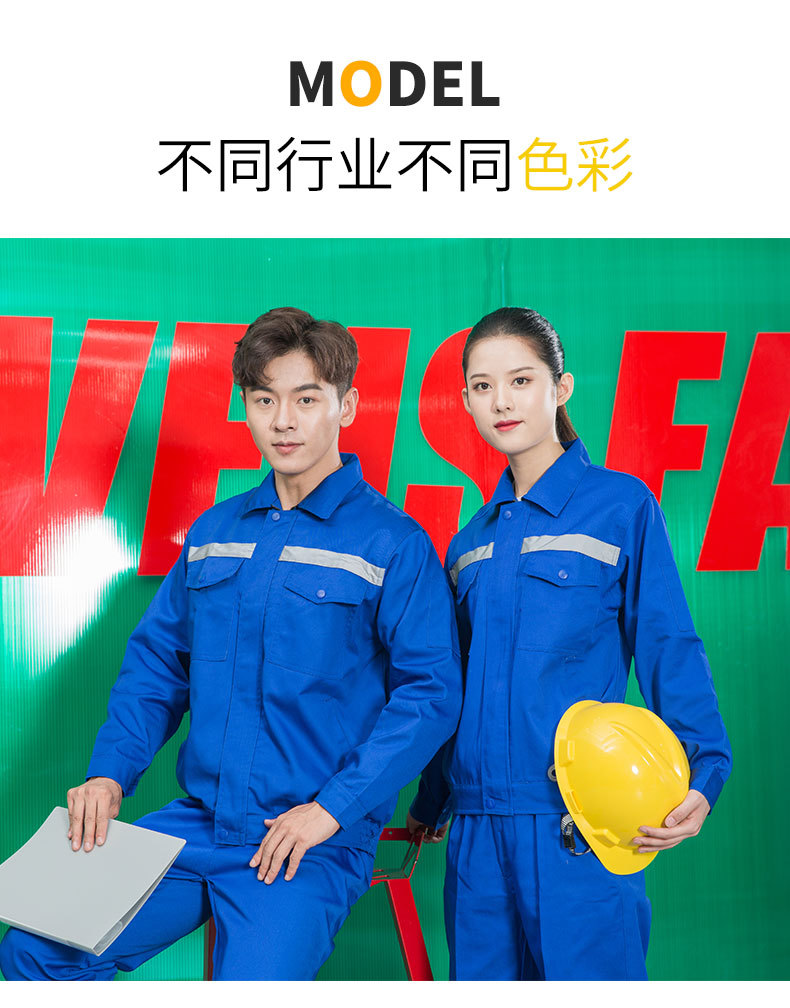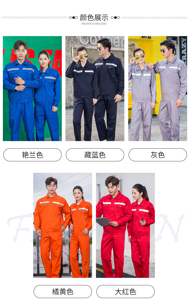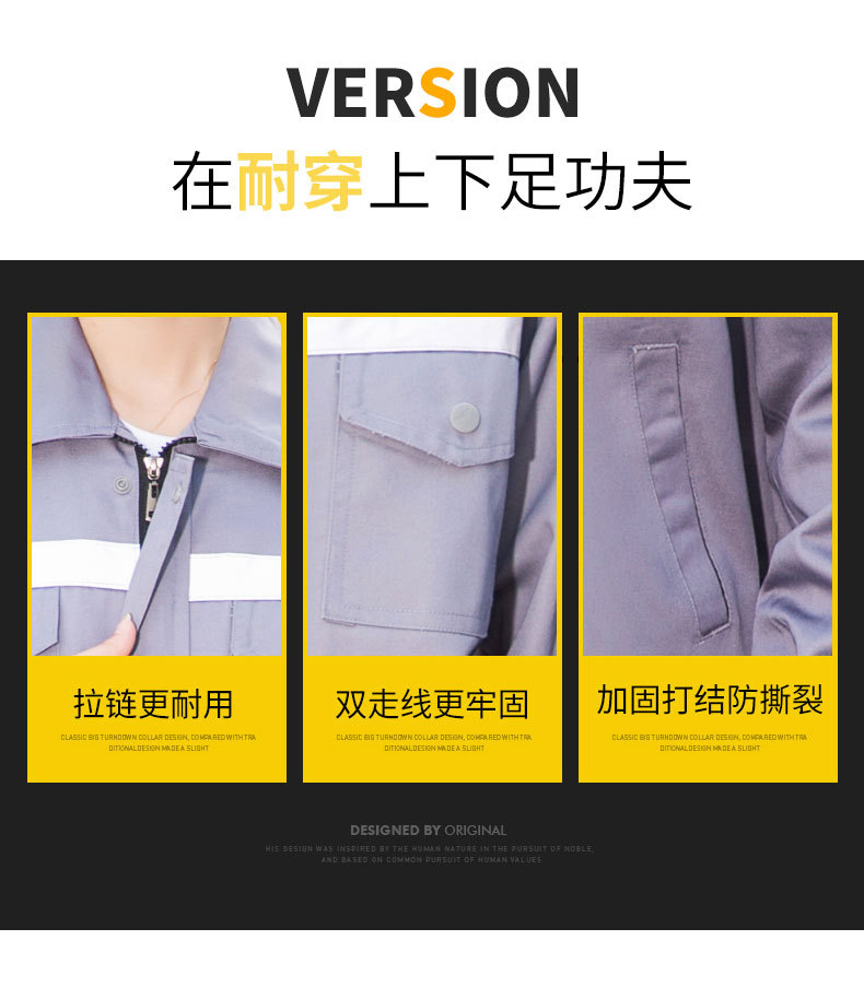 • 商品名称:君御JY-W8205春秋全工艺涤棉耐磨加厚工作服套装前后反光条灰色