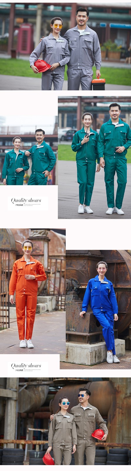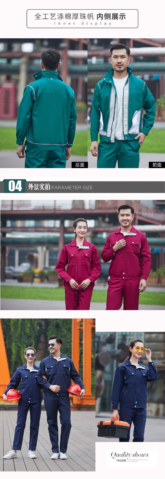 • 商品名称:君御JY-W909春秋全工艺涤棉厚珠帆拼色耐磨工作服套装绿色
