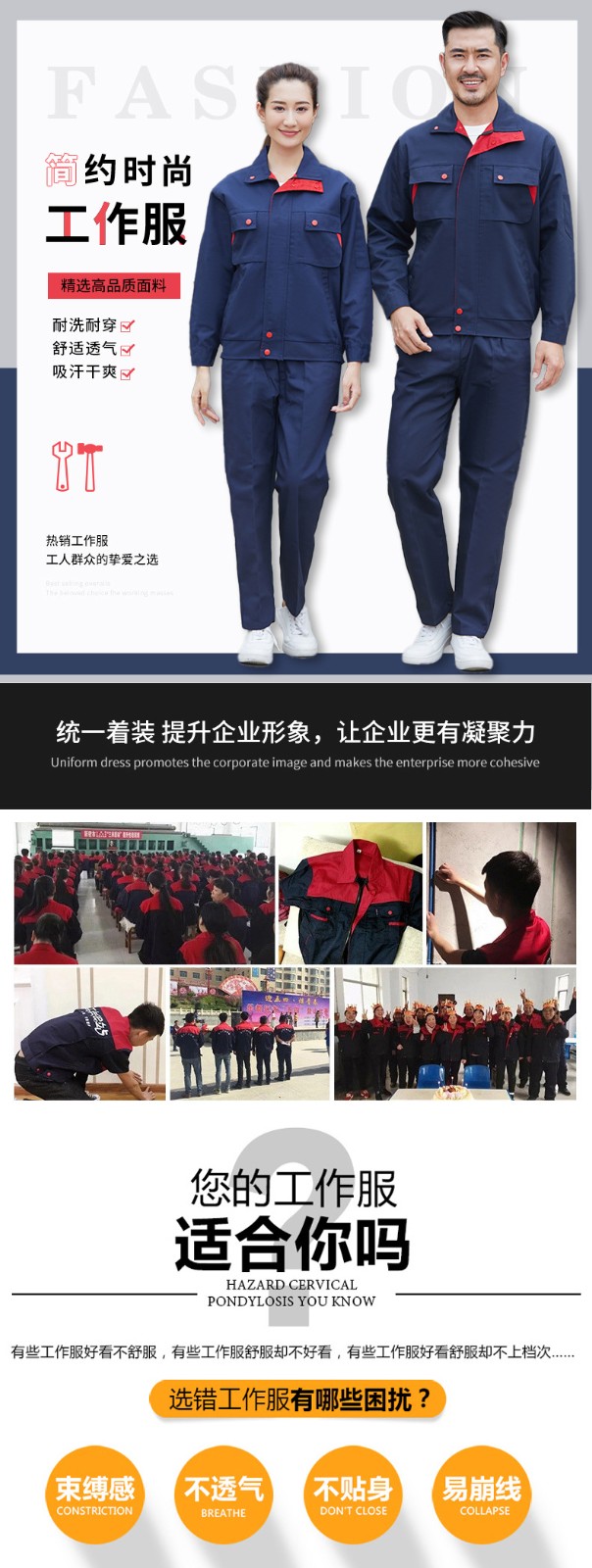• 商品名称:君御JY-W906春秋全工艺涤棉厚珠帆拼色耐磨工作服套装灰白色
