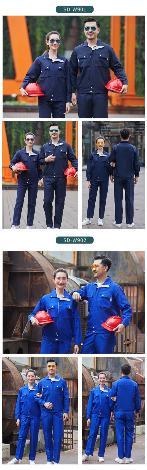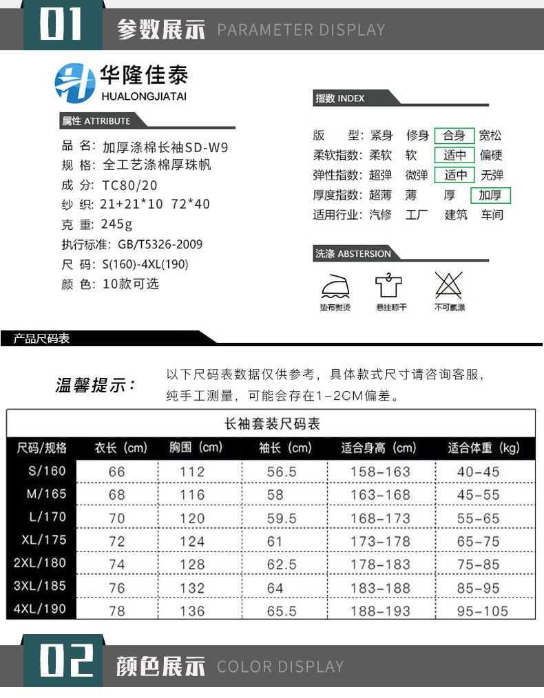 • 商品名称:君御JY-W903春秋全工艺涤棉厚珠帆拼色耐磨工作服套装深灰色