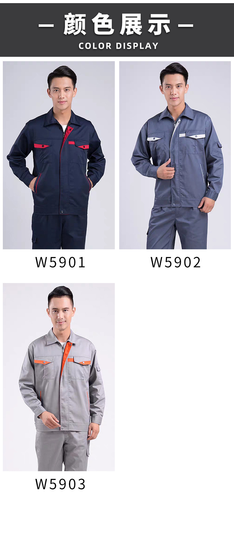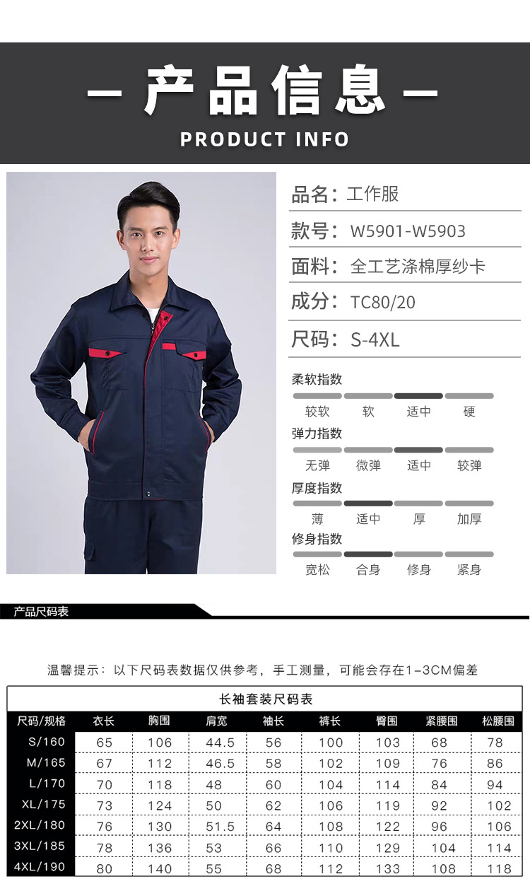 • 商品名称:君御JY-W5903春秋全工艺拼色涤棉加厚工作服中灰色