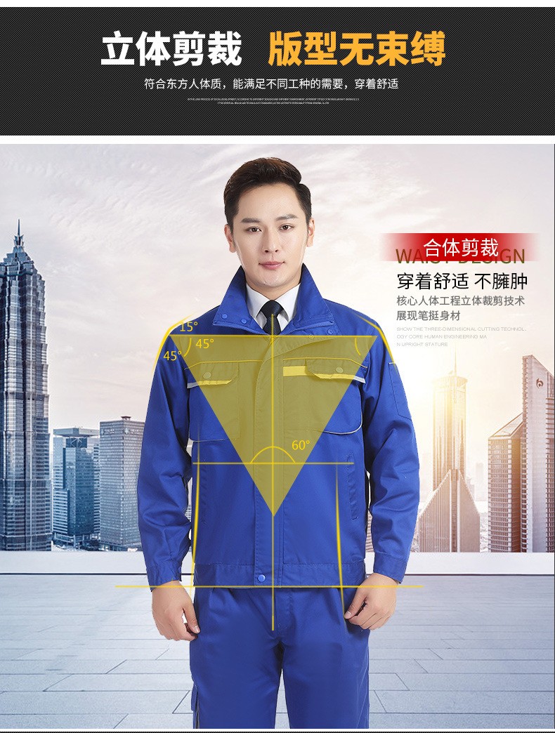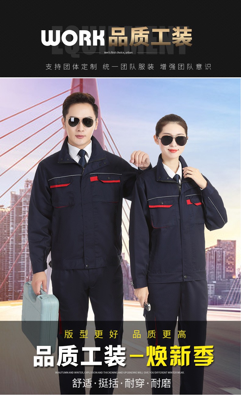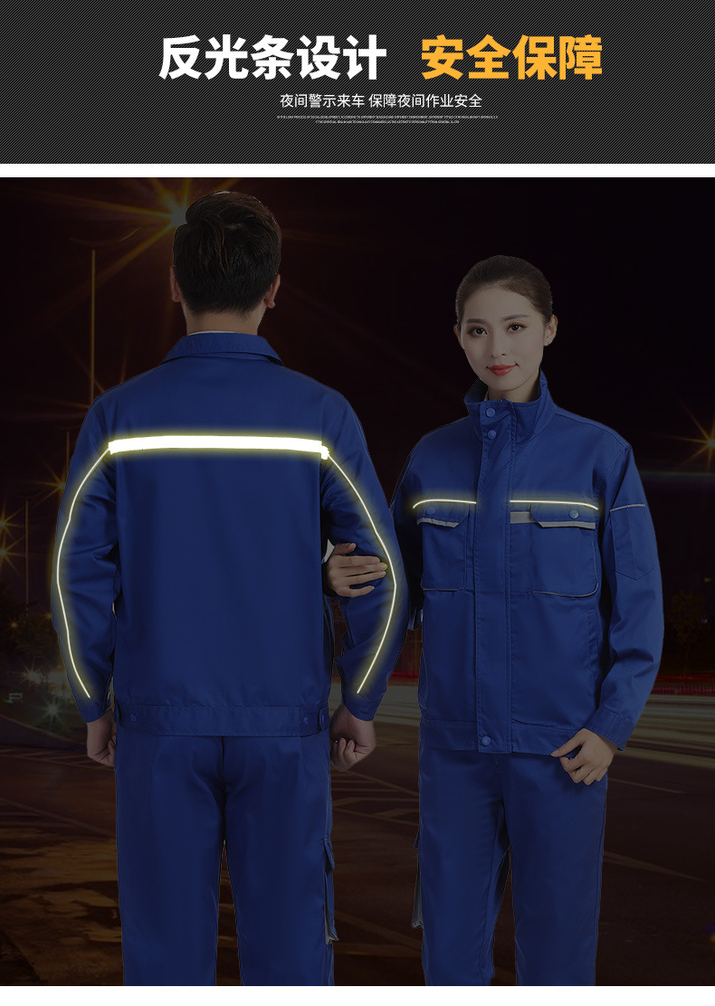 • 商品名称:君御JY-W5702春秋全工艺涤棉加厚工作服长袖套装艳兰色
