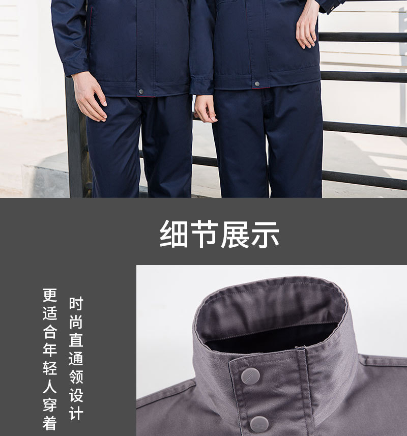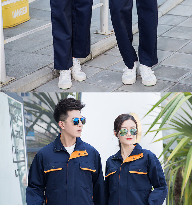 • 商品名称:君御JY-W6403春秋涤棉长袖工作服套装-藏青+橘黄色