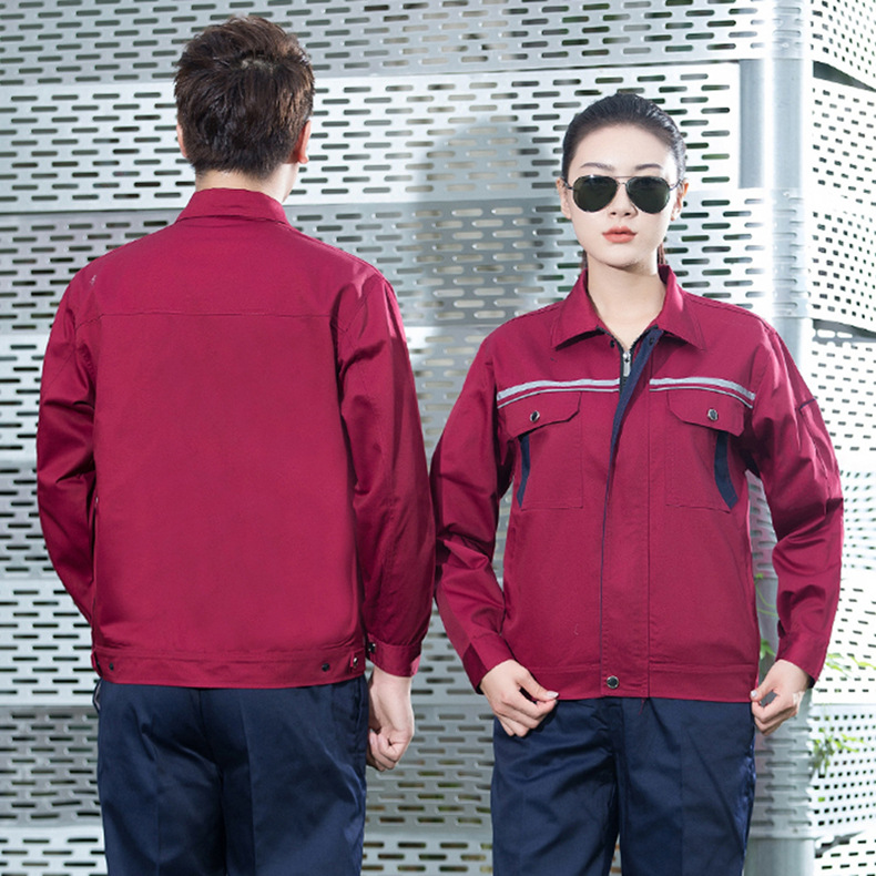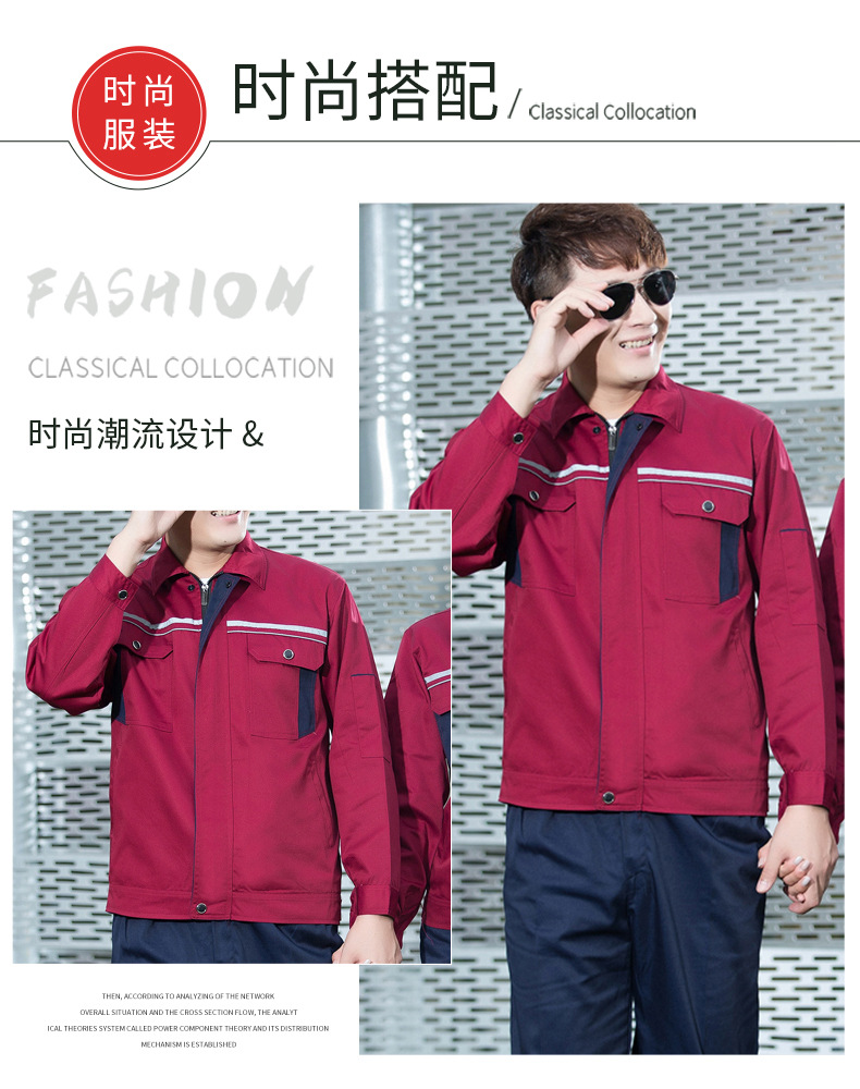 • 商品名称:君御JY-W6204春秋涤棉加厚工作服前后反光条枣红色