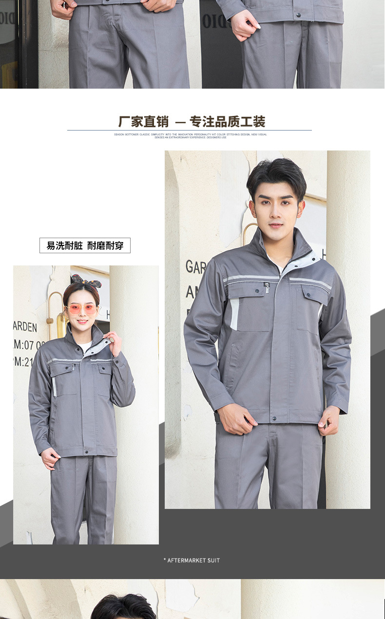 • 商品名称:君御JY-W5801春秋涤棉前后反光条加厚工作服-灰色