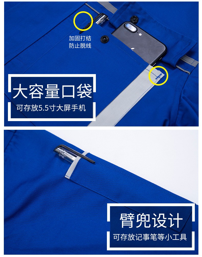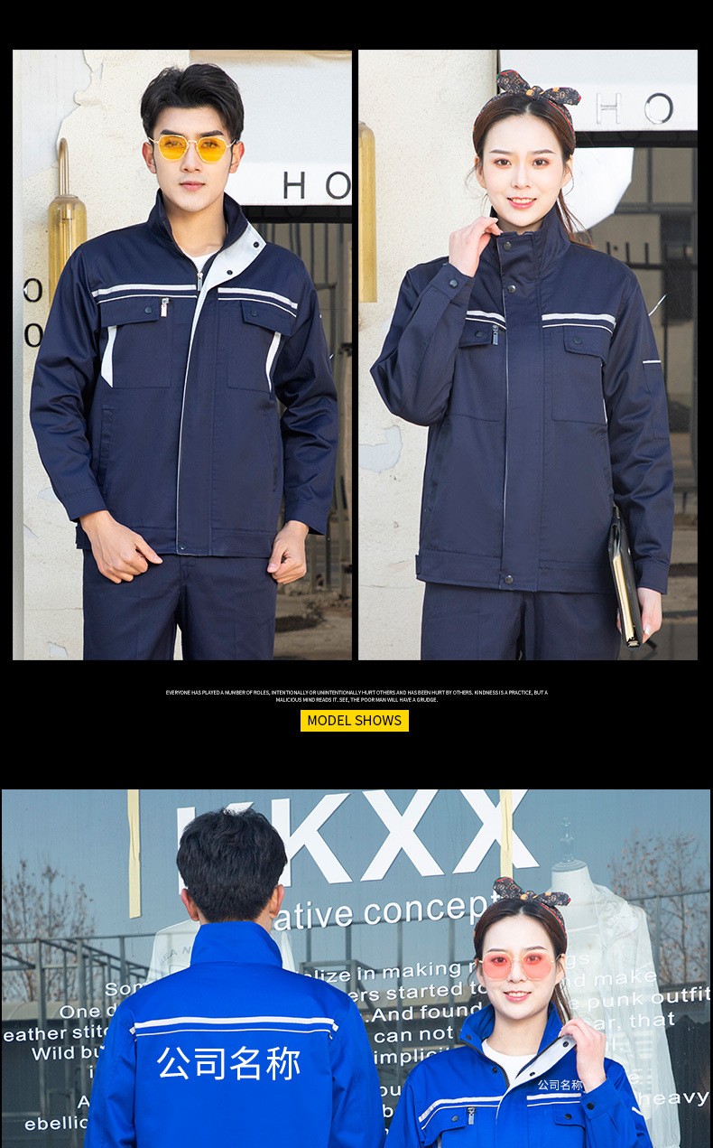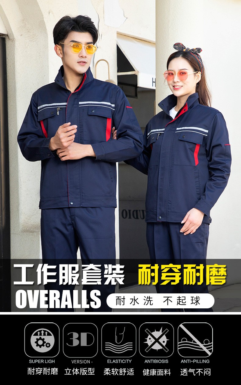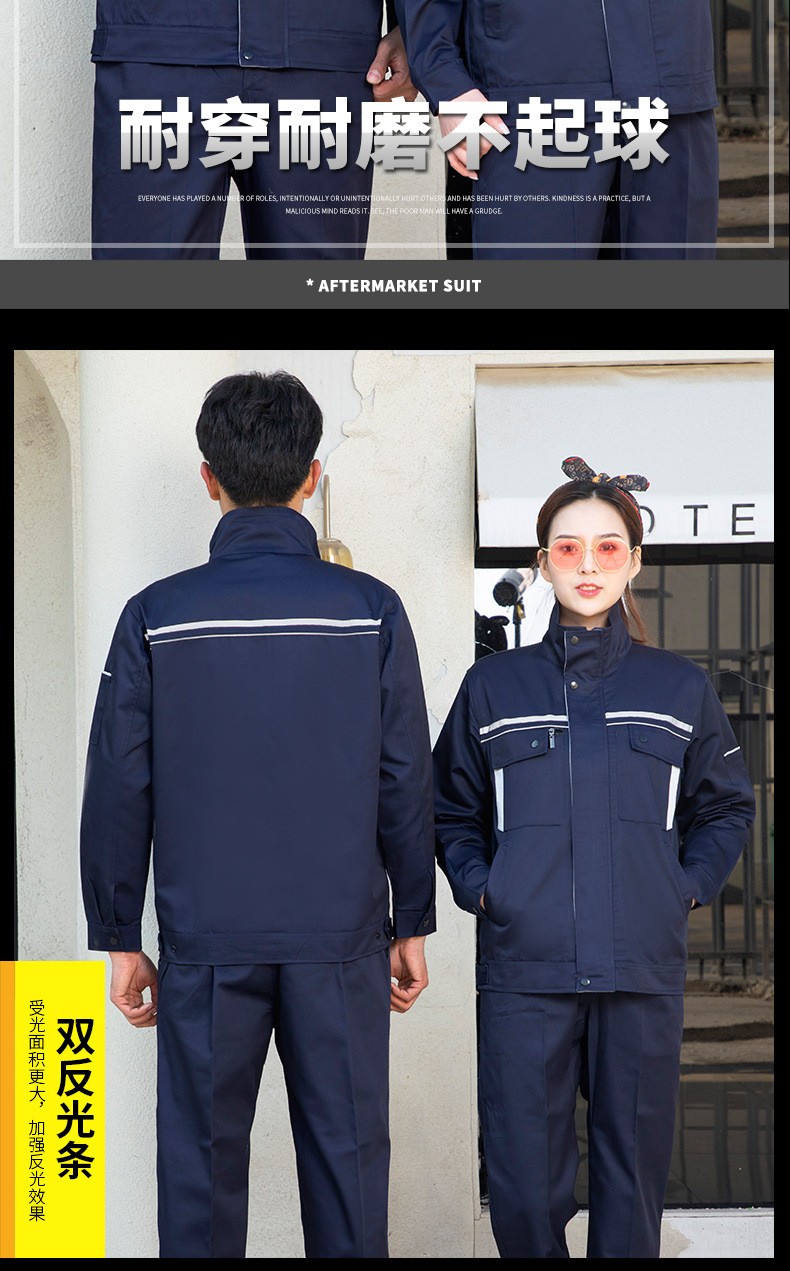• 商品名称:君御JY-W5802春秋涤棉前后反光条加厚工作服-藏青色