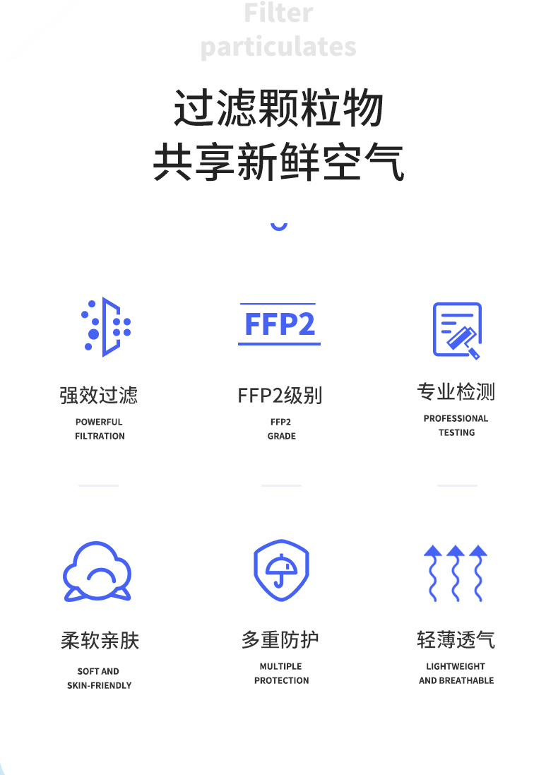 口罩符合GB2626-2019、EN149:2001+A1:2009标准。