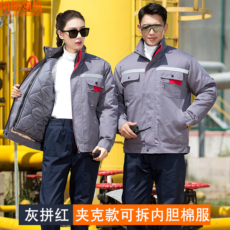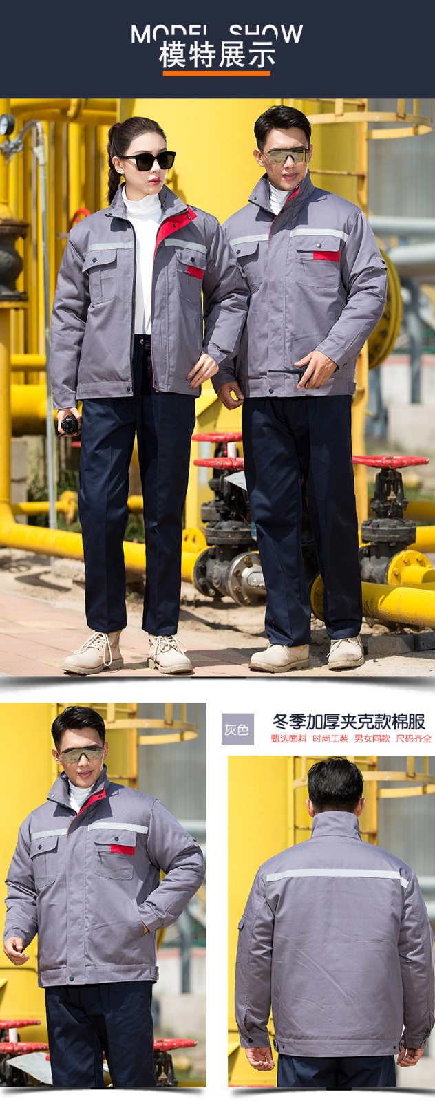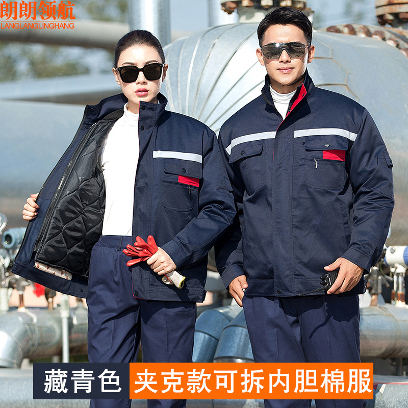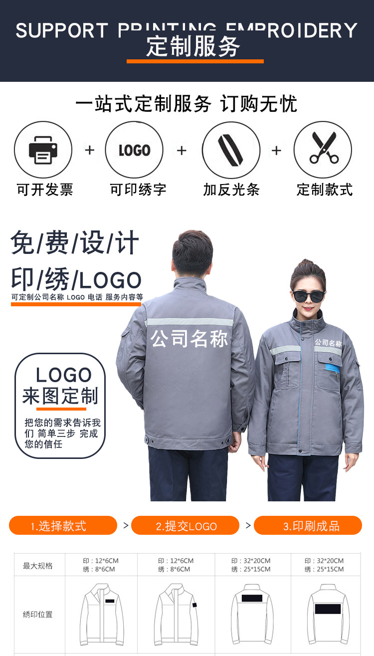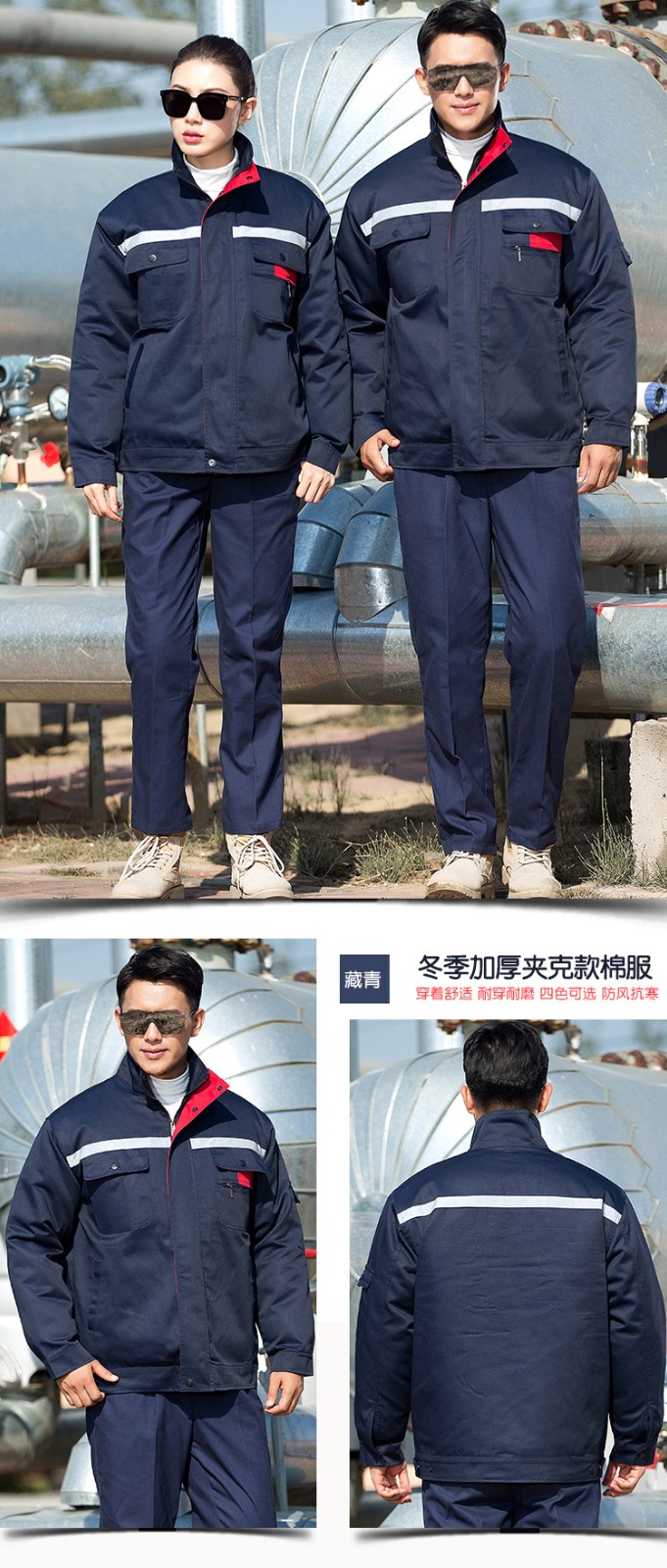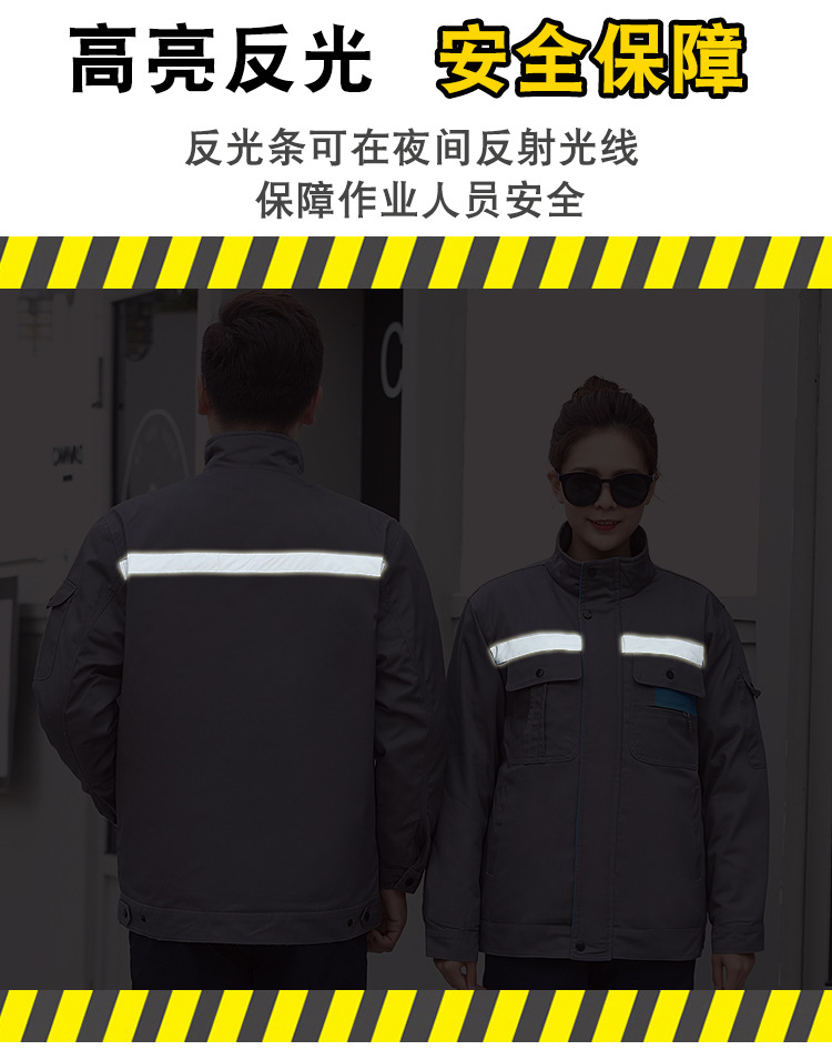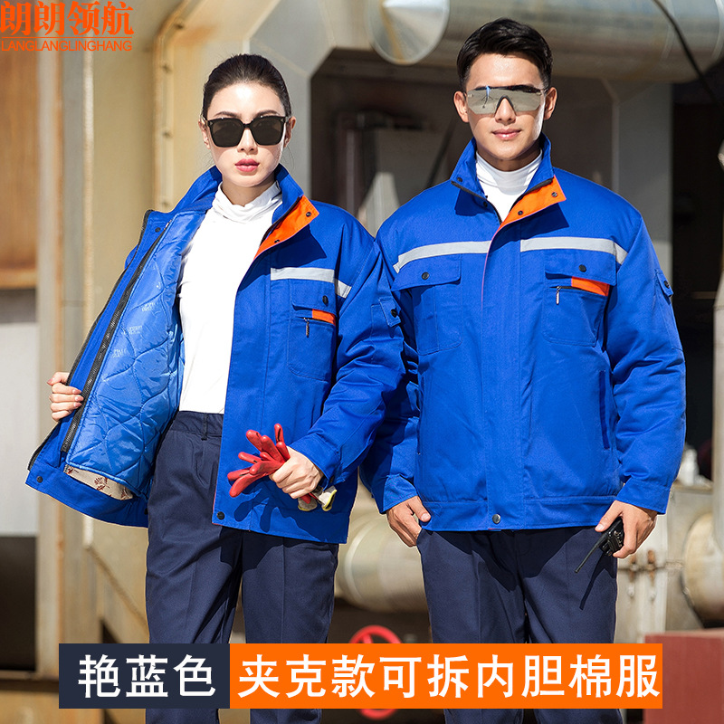 • 商品名称:君御JY-M1303秋冬涤棉加厚反光条夹克棉服工作服-艳兰色