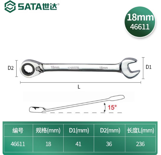 • 商品名称:世达工具 46611 全抛光双向快扳18MM