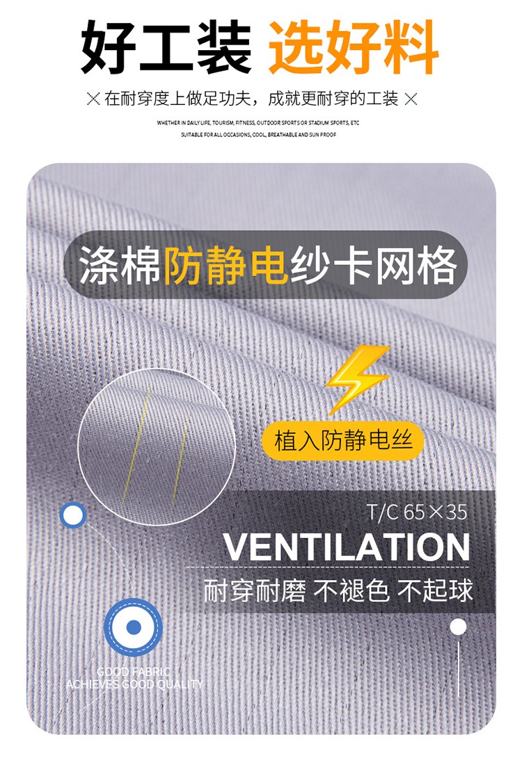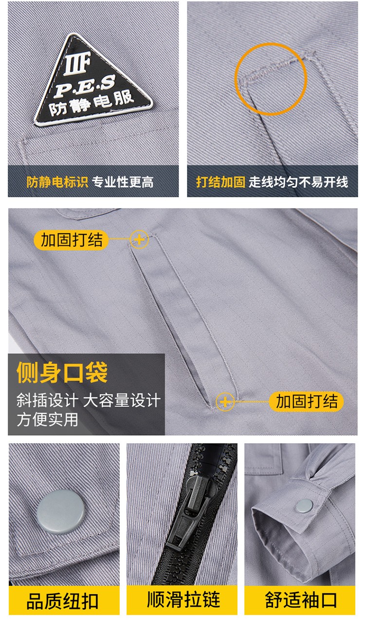 君御JY-防静电W302春秋防静电涤棉加厚双层带里子工作服-中灰