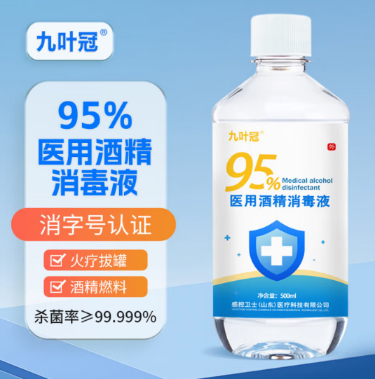 • 商品名称:九叶冠 95%酒精消毒液 消毒液 500ml