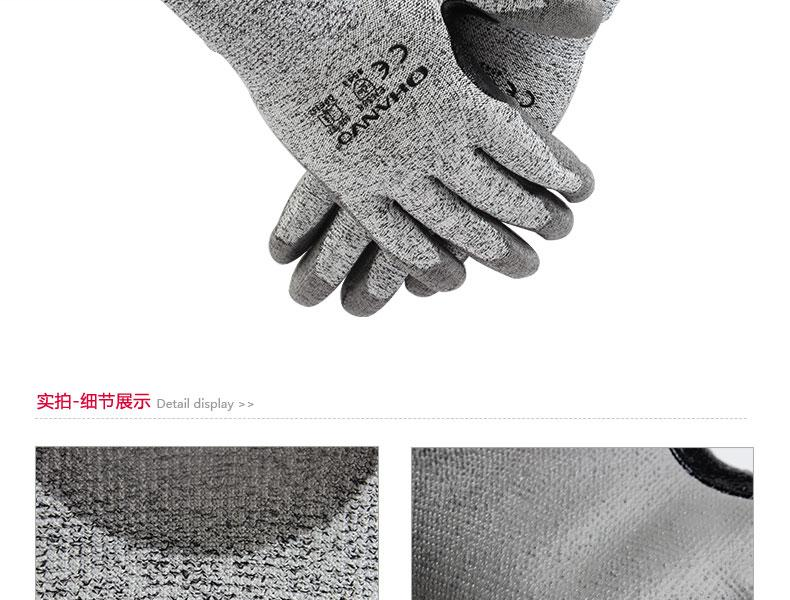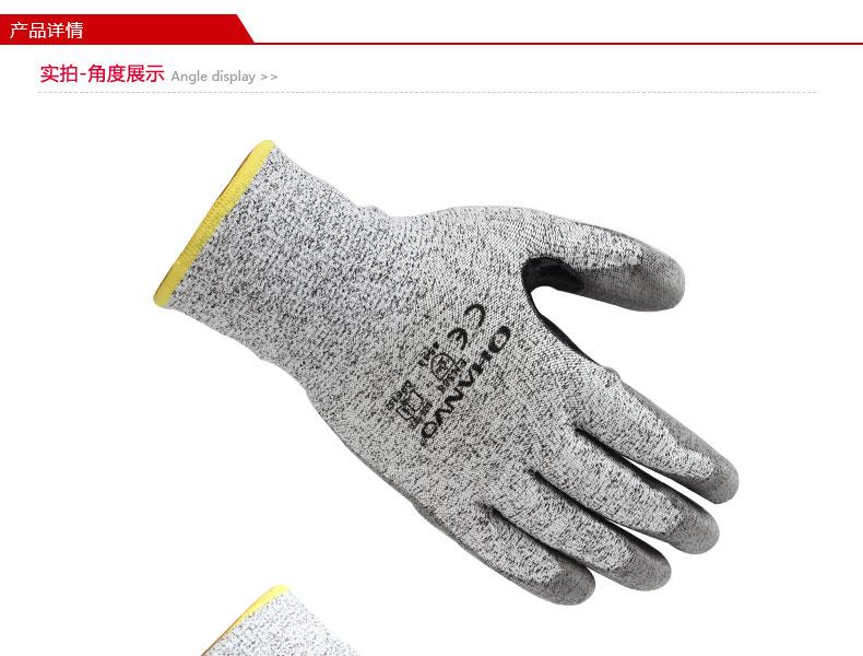 13针玻纤混纺编织手套芯,提供D级防割性能保护的同事具备良好的灵敏度和灵活性;