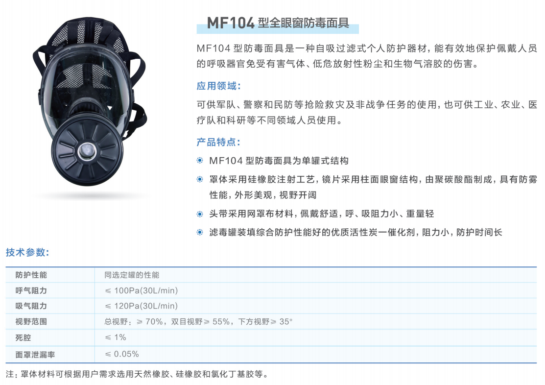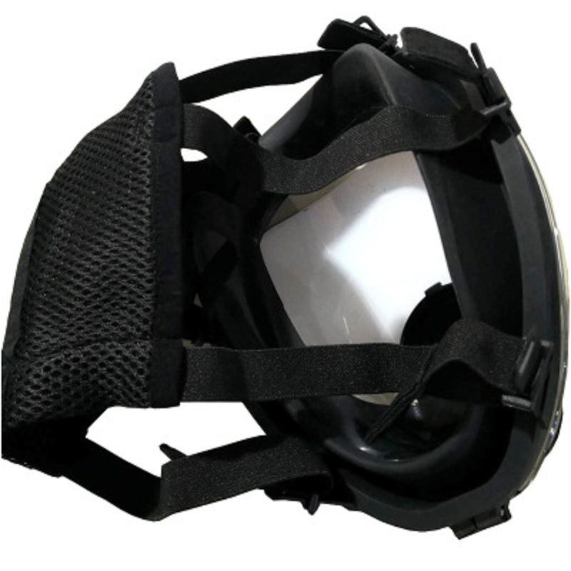 罩体采用硅橡胶注射工艺,镜片采用柱面眼窗结构,由聚碳酸酯制成,具有防雾性能,外形美观,视野开阔;