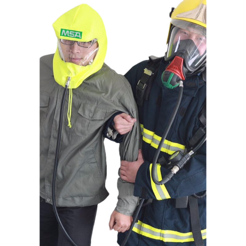 空气通过SCBA的他救接口进行供应。Rescue Hood逃生呼吸器折叠存储于一个简洁小巧的防水袋子里,便于携带;