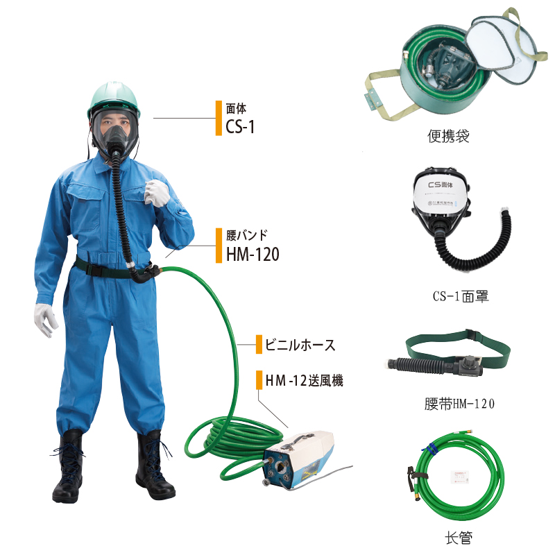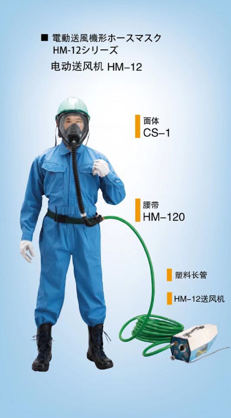 HM-12长管呼吸器面罩(SV-1)视野宽、带着舒适,与面部有双层接触,能保持高度的气密性;