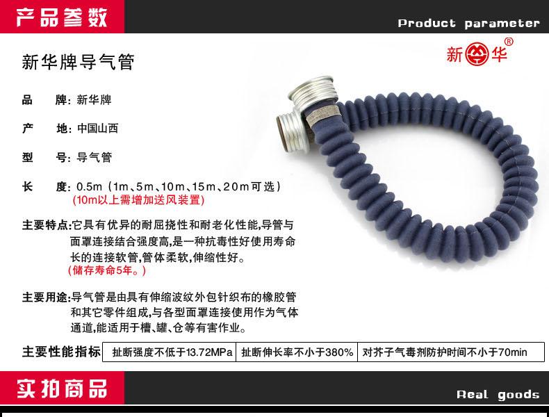 ● 该导气管有0.5m、1m、5m、10m、15m、20m等不同规格长度,它具有优异的耐屈挠性和耐老化性能,导管与面罩连接结合强度高,是一种抗毒性好使用寿命长的连接软管,管体柔软,伸缩性好,适用范围广。10m以上需增加送风装置。