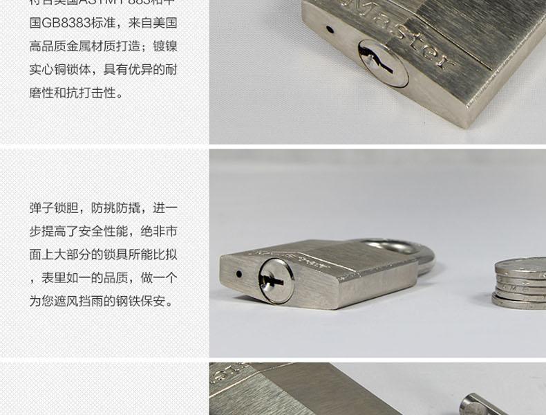 双滚珠锁紧, 4弹子,擦光的表面,镀镍实心黄铜锁体。