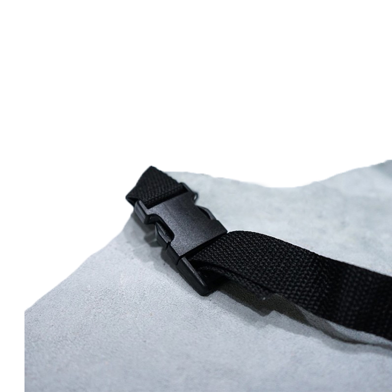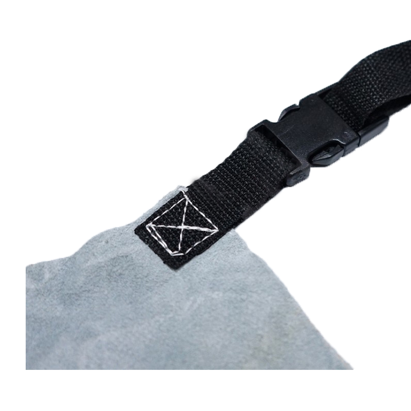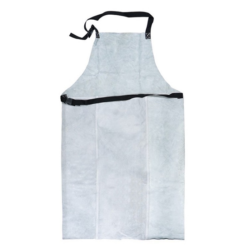 B、C级牛二层原色颈皮,单层全皮围裙,颈、背尼龙带配接连式松紧扣;