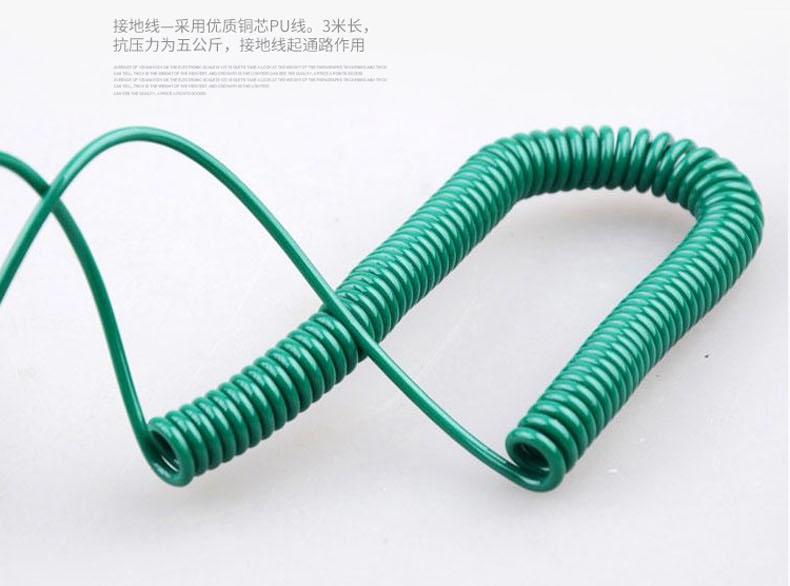 接地线—采用铜芯PU线,3米长,抗压力为五公斤,接地线起通路作用;