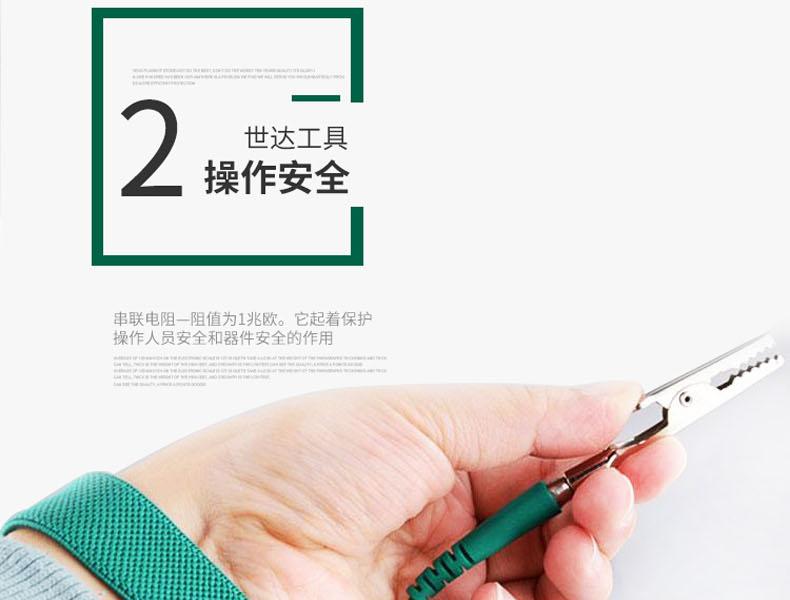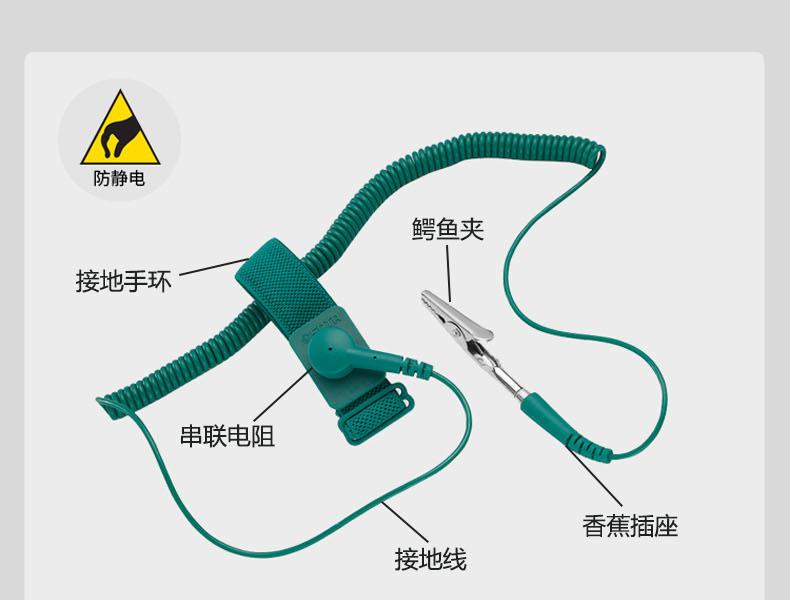 使用注意事项:请定期用腕带测试仪进行电阻测试,手腕带和人体皮肤之间的接触电阻必须小于10兆欧,此阻值容易受手环与人体皮肤之间接触的松和紧手腕皮肤的干燥程度而变化。