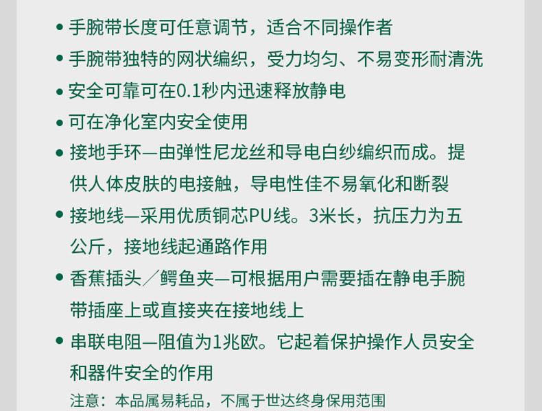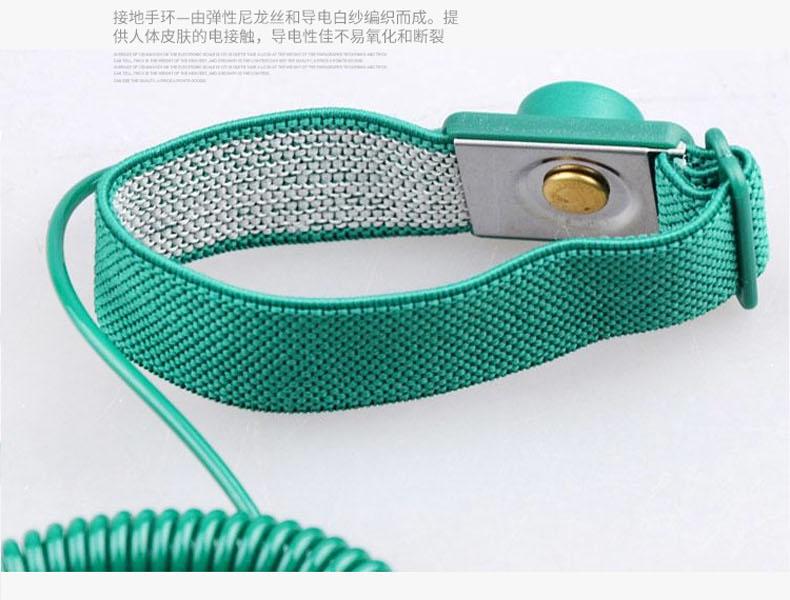 接地手环—由弹性尼龙丝和导电白纱编织而成,提供人体皮肤的电接触,导电性佳不易氧化和断裂;
