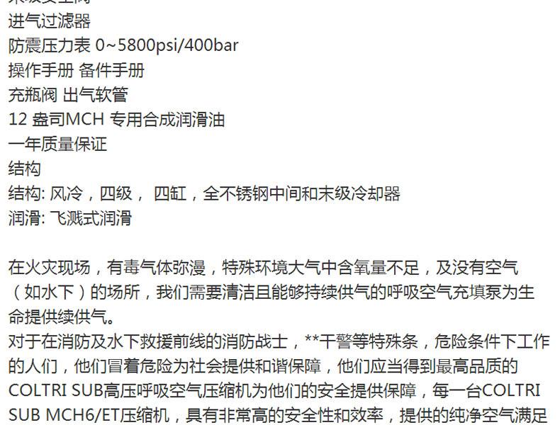构造:空冷式,四级,四缸,高压空气压缩机;