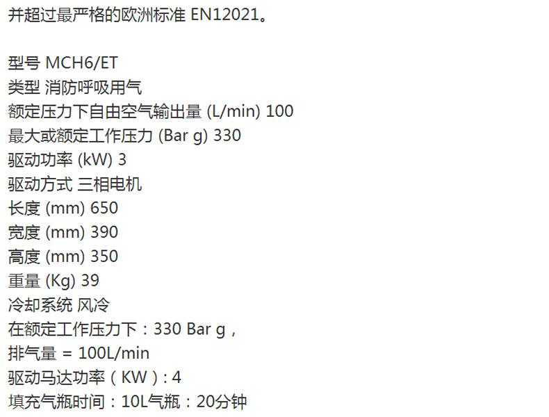 充气时间:6L钢瓶充至300 bar约21分钟;
