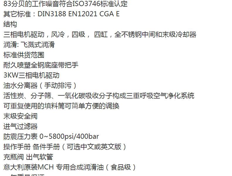 级间压:一级:3.5 bar;第二级:13 bar;第三级:50 bar,第四级:300 bar;