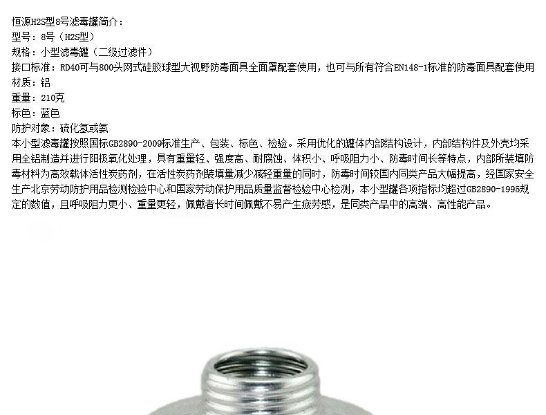 HENGYUAN/恒源 8号滤毒罐。