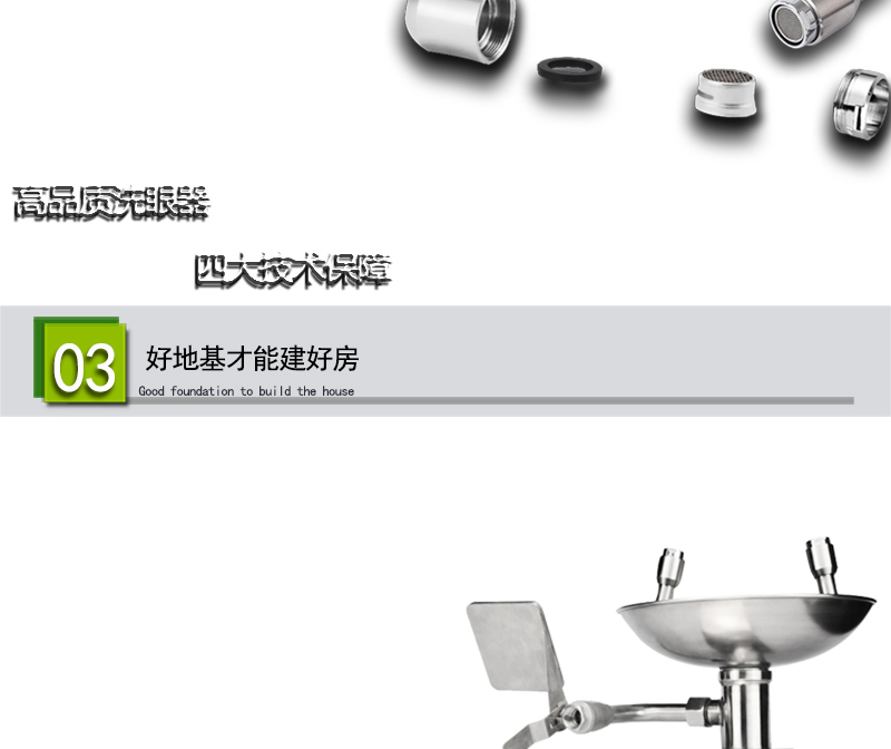 洗眼过滤网:高密度PP+304双层过滤网,可过滤水中的杂质,喷出的水呈气雾状,合抱,温和;