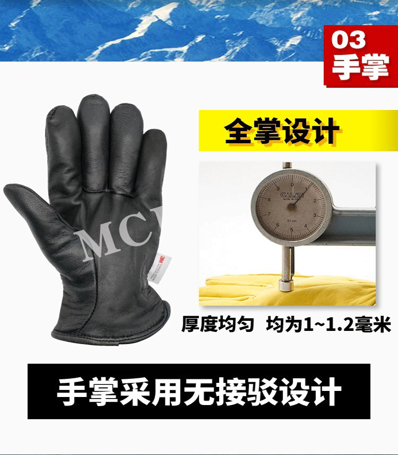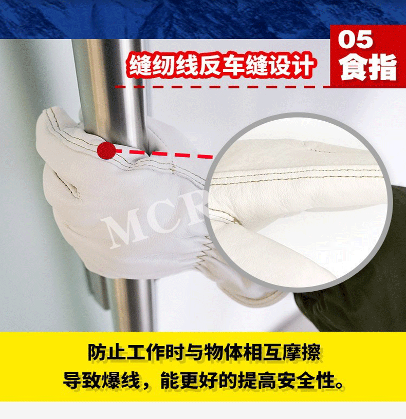 缝纫线反车缝设计,防止工作时与物体相互摩擦,导致爆线,能更好的提高安全性;