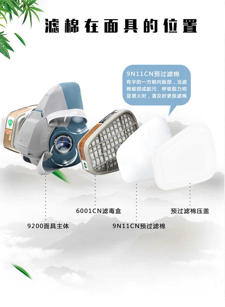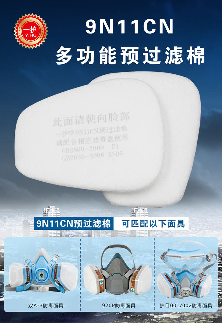 产品材质:多功能静电滤棉;可搭配双A3防毒面具,920P防毒面具,护目001/002防毒面具。