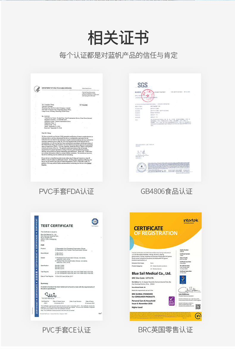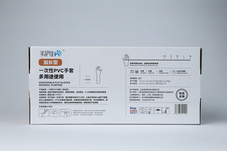 蓝帆手护佳C0047一次性PVC多用途加长型手套;