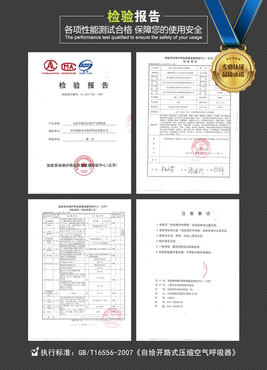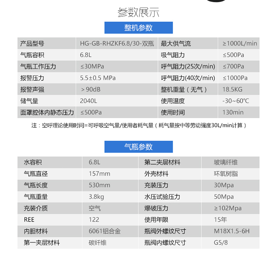 充分保证有效时间内的工作供氧。