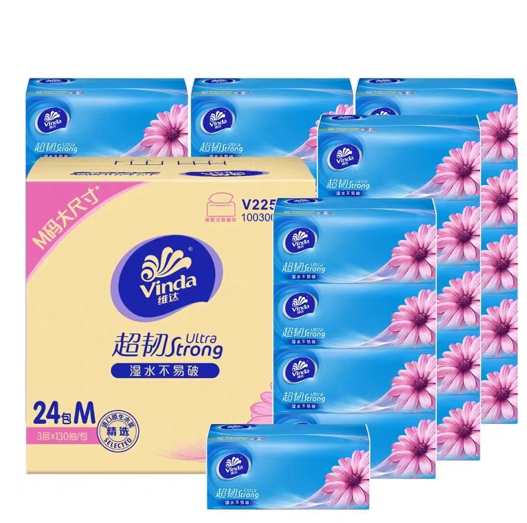 • 商品名称:维达 V2252-B 湿水不易破超韧抽纸M码130抽餐巾纸面巾