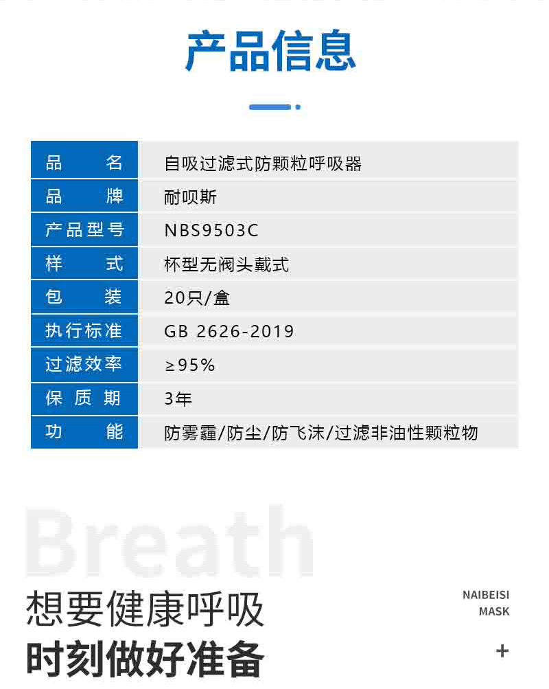 NABES/耐呗斯 KN95头带式 活性炭杯型口罩;