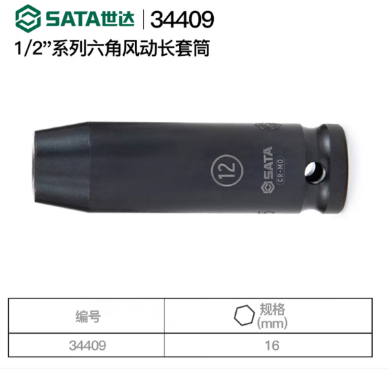 • 商品名称:世达工具 34409 1/2"系列六角风动长套筒16MM
