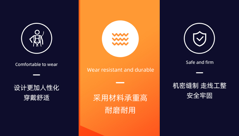 采用高强度涤纶编制而成加宽设计更抗冲击,更耐磨,安全柔软舒适。