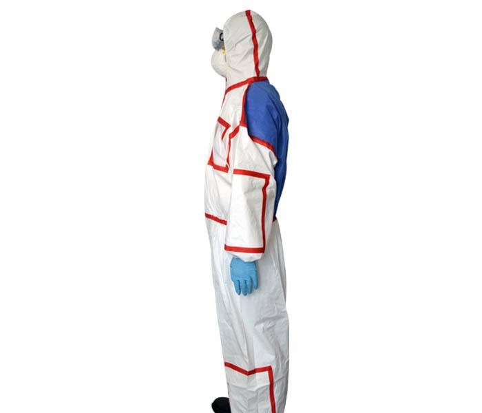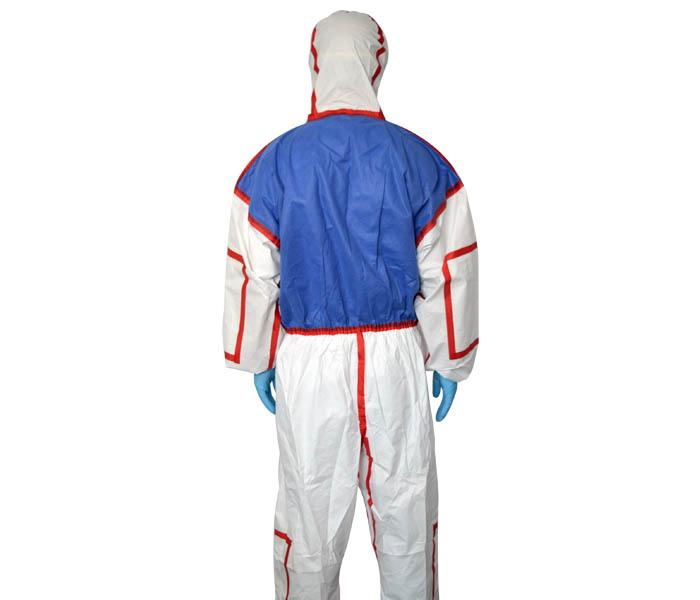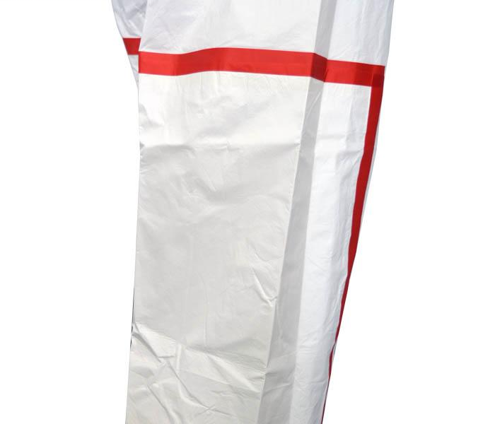 ●采用55克PE+PP透气膜面料,红色热熔胶条工艺;