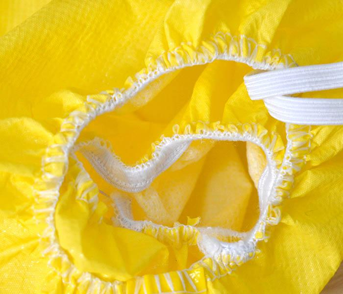 采用87克PP+PE淋膜面料,黄色热熔胶条工艺;