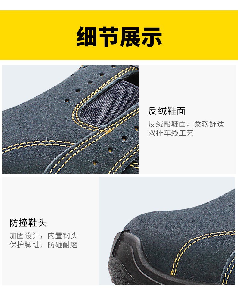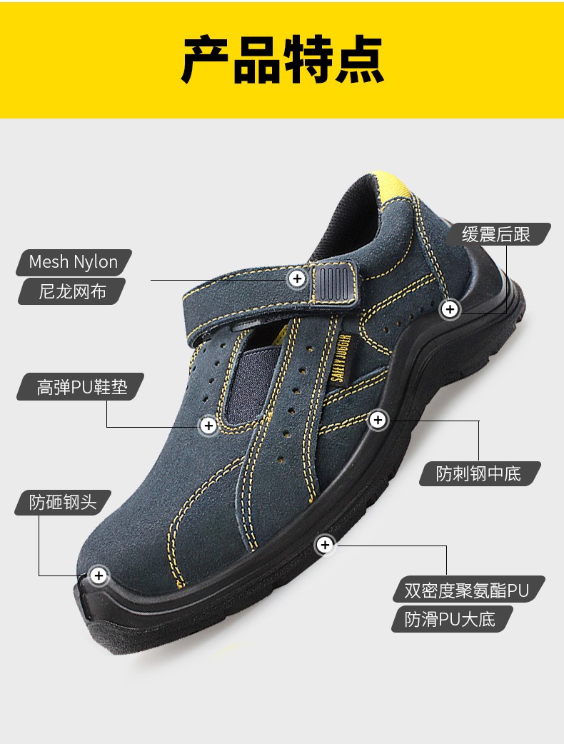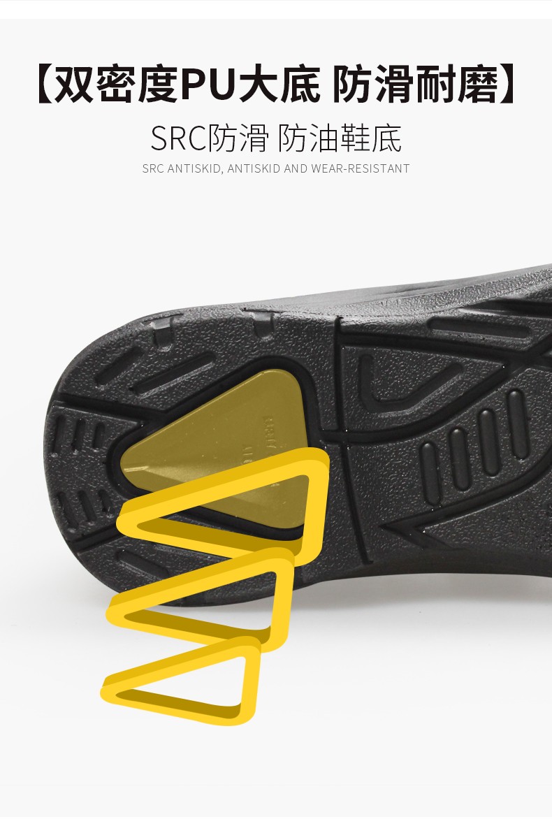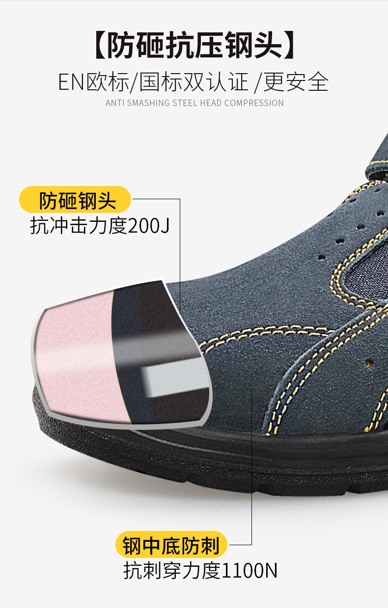 钢质防砸包头保护足趾,钢制防刺穿中底;