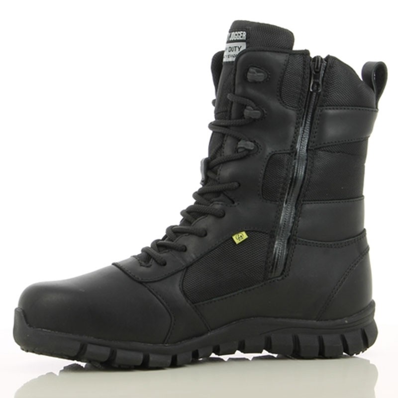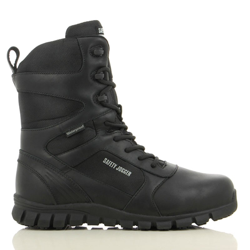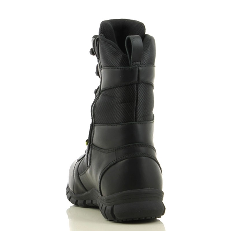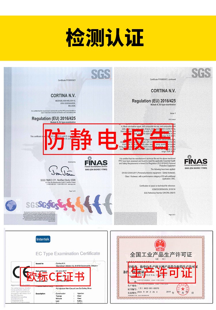 减震防油飞龙+天然橡胶大底,耐油污、具有优异的耐磨性、耐曲折性、耐撕裂性,ESD 超高防静电(10^5 Ω≤ESD< 10^8 Ω)、减震吸能,欧标 S3 等级防水、SRC 欧标最高级别防滑;