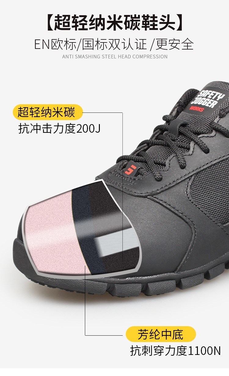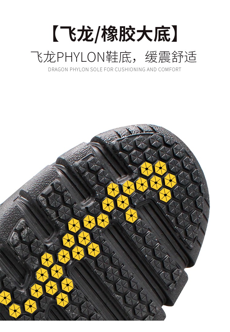超轻纳米碳防砸包头保护足趾,超轻芳纶(高强度聚乙烯)防弹材料防刺穿中底,减轻重量增加柔软度;