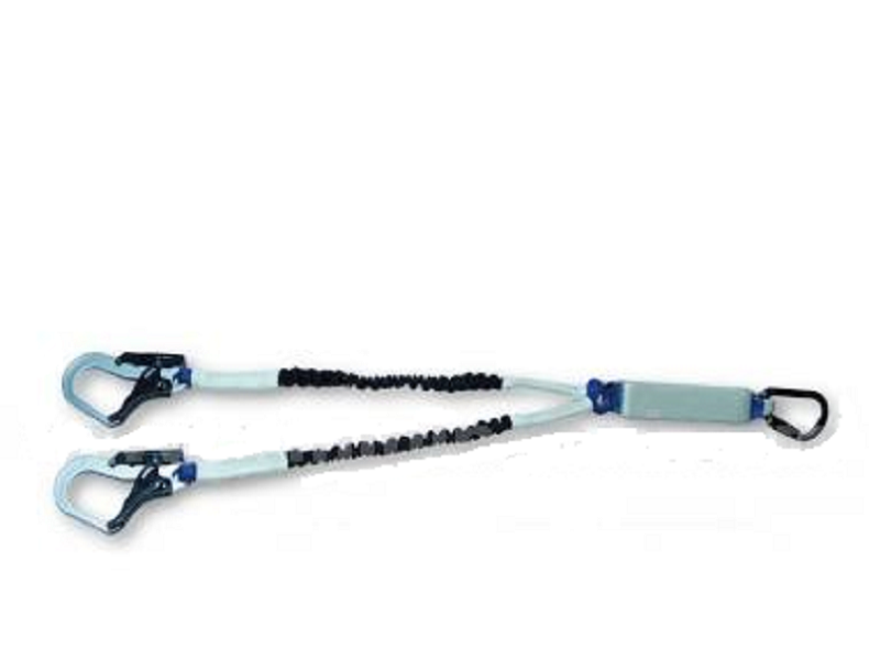 配有一条双叉型伸缩带两只钢筋挂钩660228和一只吸能缓冲包660560,一只钢制钩环660268,伸缩带是经过特殊工艺制作而成的,吸能缓冲包的撕裂强度大于2KN,小于6KN,打开长度为1500mm;