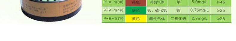3 | 褐色 | 防有机气体 | 有机蒸汽:苯及其同系物、汽油、丙酮、二硫化碳、醚等 |