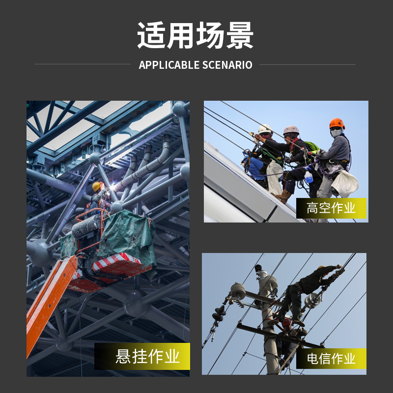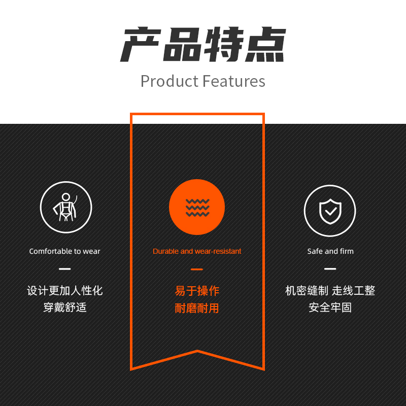 两侧各有一个连接锚点,用于工作定位,1个松紧调节扣;